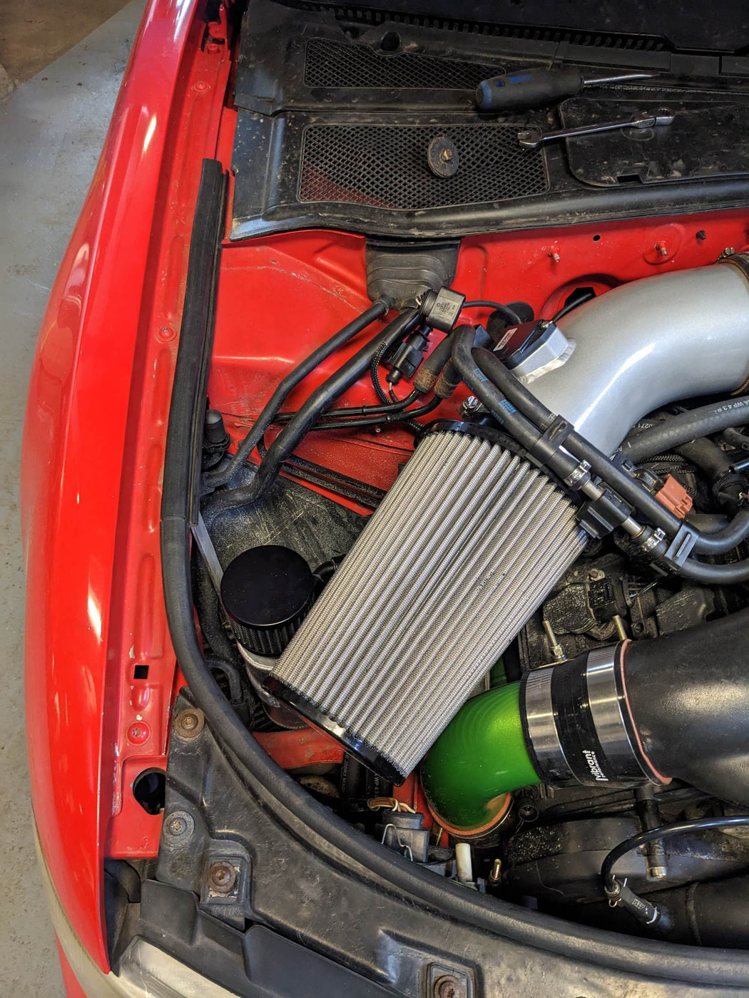 This setup will fit with any standard cone filter intake, even the monstrous Torque Factory 4.5" filter. This will not fit with an OEM airbox or the 034 Carbon air shield.
