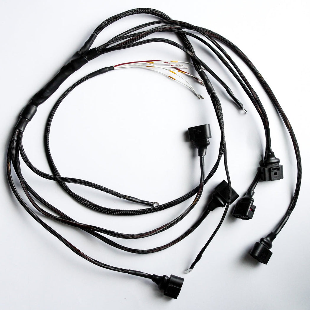 Made in house for your Audi B5 S4 2.7t, upgrade your OEM 3-pin coil packs and ICMs with 2.0t/R8 coil packs and completely eliminate the weathered original wiring at the same time.