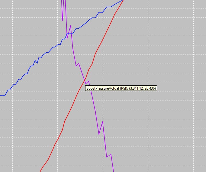 The larger turbine wheels allows us to lower back pressure limited by housing sizes which lets the engine breathe easier.  This combination has been proven to make 20 PSI by 3300 RPM on an 82.5mm piston motor running Ethanol (mods and engine health will change these characteristics).